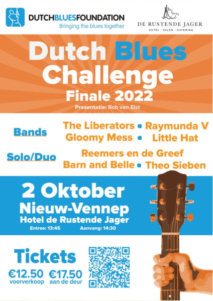 Kaarten voor de Dutch Blues Challenge ad. € 12,50 (voorverkoop, incl. servicekosten) zijn te bestellen via www.dutchbluesfoundation.com Aan de zaal kosten de kaarten € 17,50.