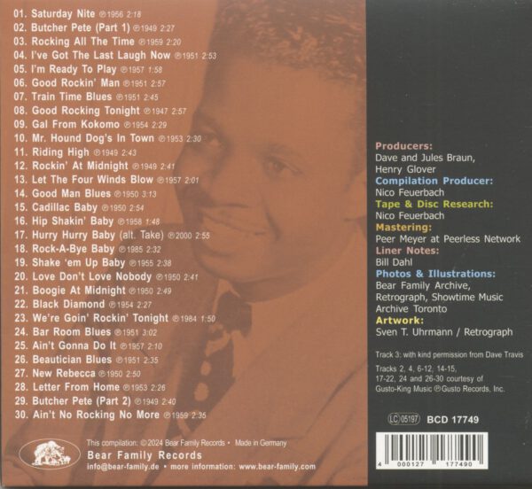 Tot aan zijn dood in 1981 bleef Roy Brown door rocken. Op deze Bear Family verzamelaar is geen rustpunt te vinden. Wel rockende nummers die Roy opnam voor labels als DeLuxe, King, Imperial en Home Of The Blues.